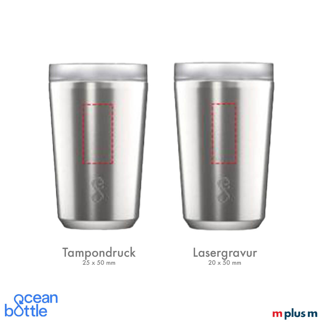 Ab einer Bestellmenge von 25 Stück können Sie Ihre Ocean Bottle Thermotasse 350ml mit Logo bedrucken oder gravieren lassen. Dadurch wird der Isolierbecher zu Ihrem idealen Werbeartikel.